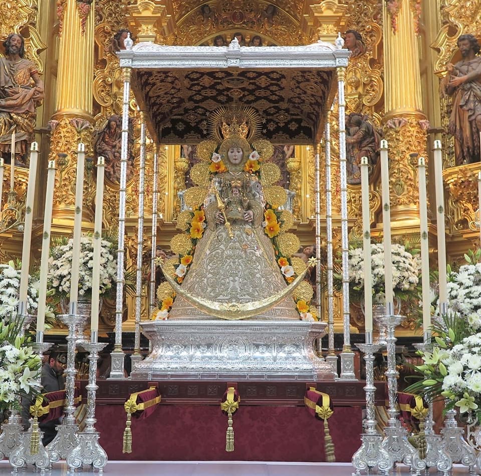 como de los Apóstoles, la Virgen del Rocío ha amanecido entronizada en